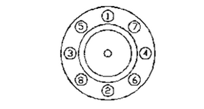 7.   前法蘭與料筒螺絲一定要對稱均勻擰緊。如圖4所示: